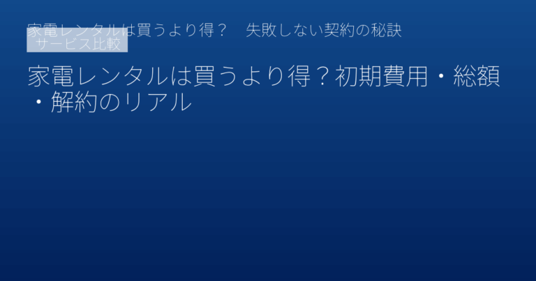 買う vs 借りるを総額・期間・解約条件で比較。短期〜中期の一人暮らしならレンタルが得になるケースが多いです。
