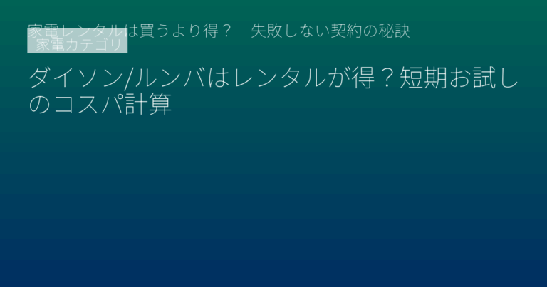 高価格帯の掃除機は“まずレンタルで試す”のが安全。短期〜3か月での費用対効果を解説。